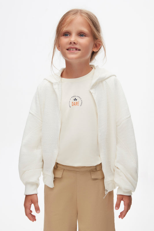 Girls off white, long sleeve t-shirt cotton.