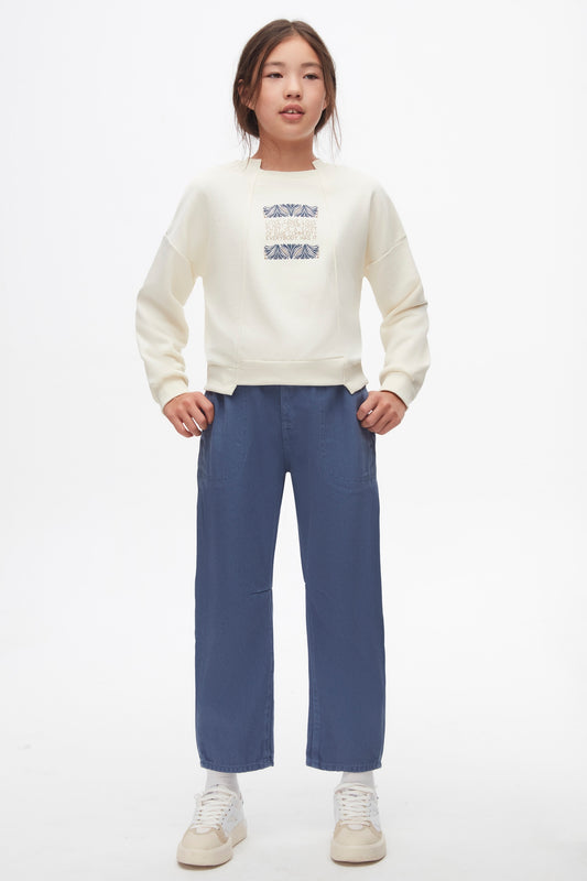 Girls' cozy indigo blue joggers. Relaxed fit with pocket. breathable, high -quality cotton fabric that keeps you comfortable all day long.