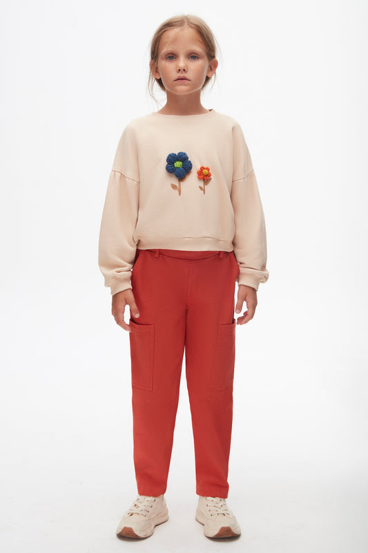Girls flower patern Jumper.Soft and cozy, kids casual wear, vibrant yarn flower design.