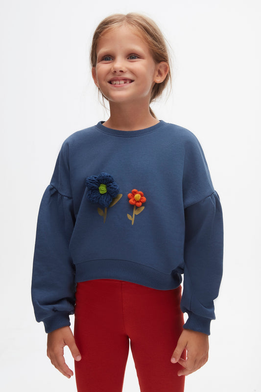 Blue 3D flower appliqué jumper