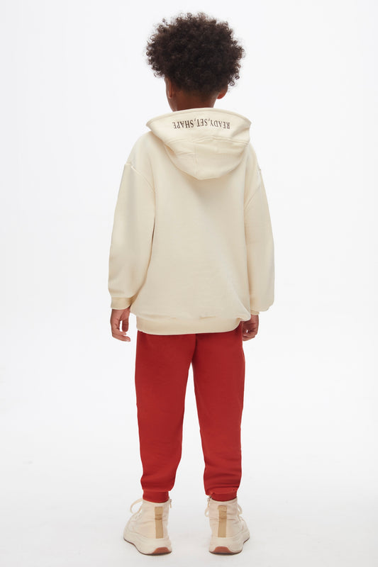 Kids oversized hoodie sweatshirt, beige colour.