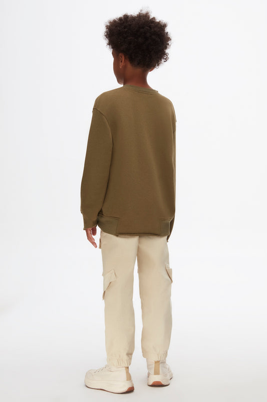 Olive green kids sweatshirt ,unisex soft cotton jumper with geometric print.