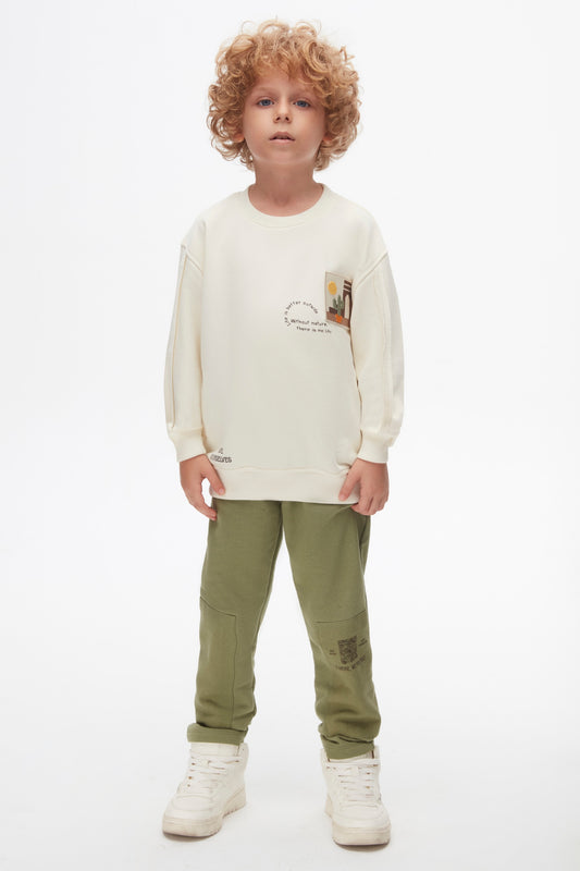Boys Sweatshirt.The modern geometric design and neutral beige colour